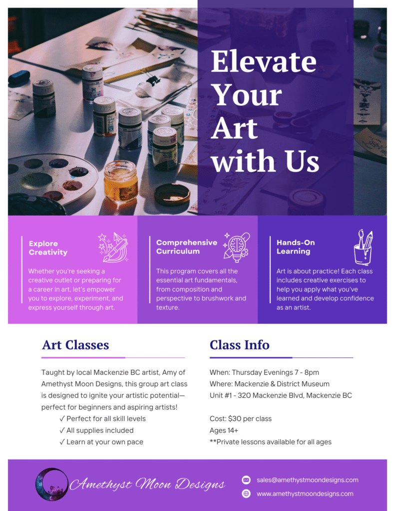 For more information visit https://www.amethystmoondesigns.com/art-class